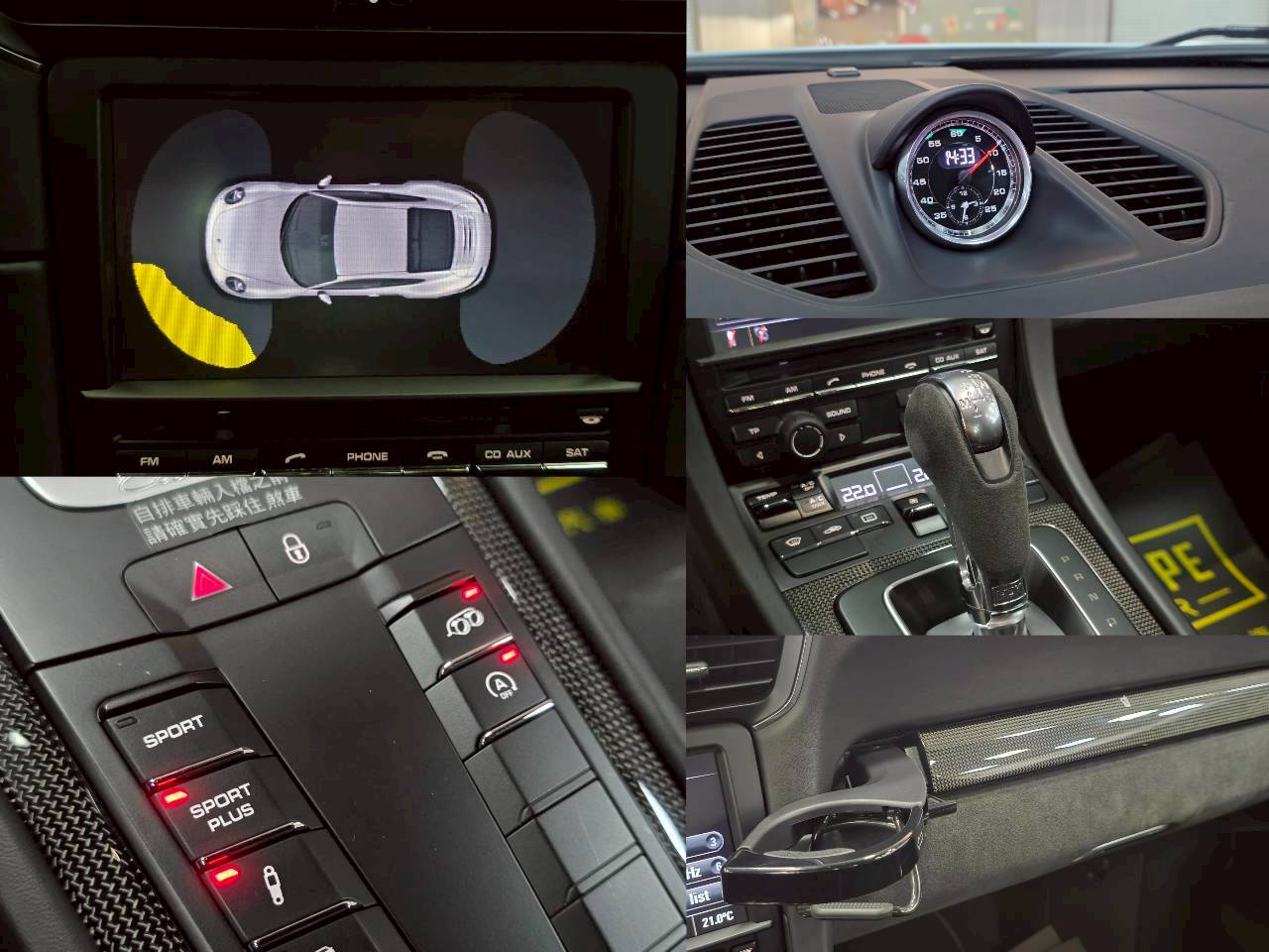 全面競技化的跑車座艙,延續 Porsche 以駕駛者為中心的哲學,將奢華質感與戰鬥氛圍完美平衡。車室內大量採用質感冷冽的黑色 Alcantara 麂皮包覆,從方向盤、排檔桿到跑車座椅椅面,提供絕佳的防滑性與觸感。標配 Sport Chrono 跑車計時套件,中控台上的計時碼錶時刻提醒著源自賽道的榮耀;搭配對比色縫線與碳纖維飾板點綴,不僅展現細膩工藝,更營造出讓人腎上腺素飆升的純粹駕馭環境。